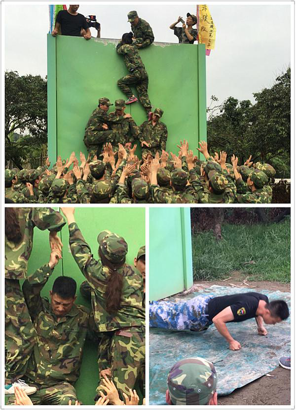 不经历风雨怎么见彩虹?!不接受磨炼的洗礼如何能成长?!正是我们精诚合作,团结一心,永不言弃,才拿下了一个又一个看似不可能完成的训练项目。在今后的工作中,只要我们永不放弃,团结一致,坚持到底,就一定能够取得最后的成功!