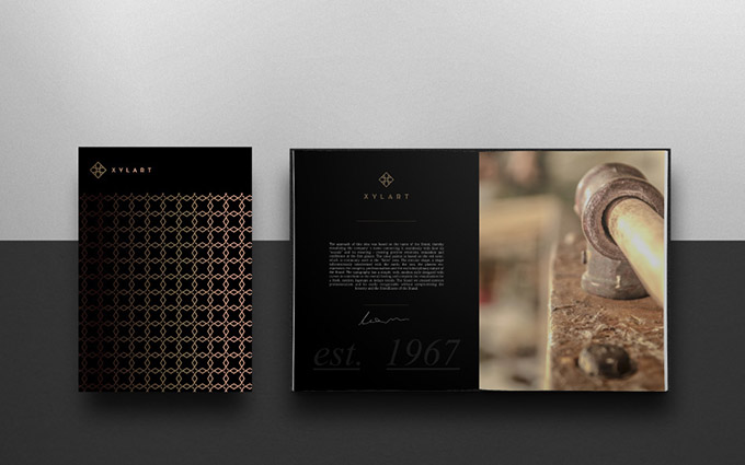 XYART始于1967,是一家定制式的手工木制家居作坊。在运营了七十四年后,作坊的下一代继承人决定要提升其品牌打造一套完全的家居企业VI设计系统,同时也要对经典旧式的定制家居做出一种更符合现代生活的全新的创造。重新规划后,VI设计公司为其企业VI设计系统打造了一个核心的视觉符号——以其品牌名称的首字母“X”为原型的标志设计,同时,这个“X”的原型也是其设计的经典"X支架"转换而来,带有品牌自身的属性。无衬线字体的运用和黑色与铜箔的配色方案,则很好的传递了一种专业、经典的感觉。整体的企业VI设计上,都遵循其本身,对已有的做出适合品牌本身的创新和再设计,让各种图案和符号都呈现出一种现代化与经典美学结合的和谐感。下面由聚奇广州VI设计公司小编为您展示XYART家居企业VI设计案例: