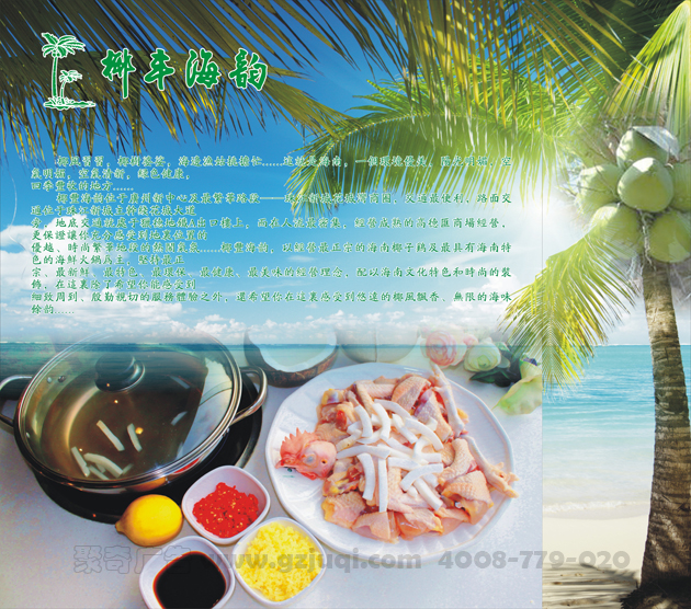案例介绍:“椰丰海韵椰子鸡海鲜火锅主题餐厅”店内海报设计