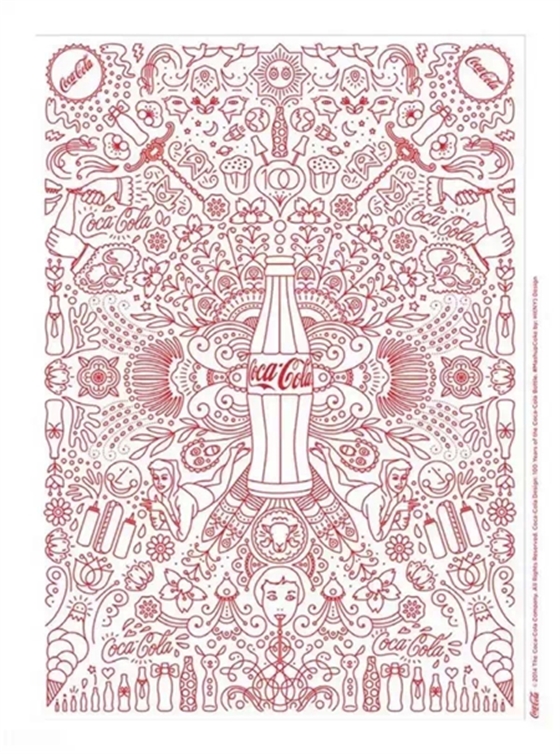 可口可乐曲线瓶自诞生起到今年为止已整整有100周年,为此,可口可乐像举行盛会一般,特地甄选出来自15个国家、130多位创作者,为经典的可口可乐曲线瓶瓶形及图像做创作,并且限定创作只能使用三种颜色:可口可乐红,黑色和白色。但是如此苛刻的条件限定,依旧阻挡不了设计师们的才华。
